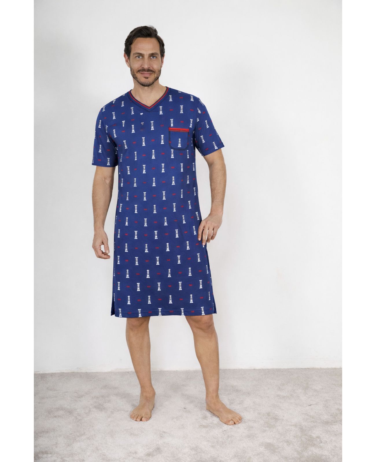 La chemise de nuit homme YOHAN signée Christian Cane réhabilite avec panache ce vêtement de nuit intemporel dans une version résolument contemporaine et nautique. Confectionnée dans un jersey de coton imprimé phares all-over bleu marine, cette chemise de nuit homme déploie une silhouette longue et enveloppante qui conjugue liberté absolue et caractère affirmé. Pour l'homme qui revendique le confort authentique sans sacrifier le style, la YOHAN est une pièce rare et attachante.