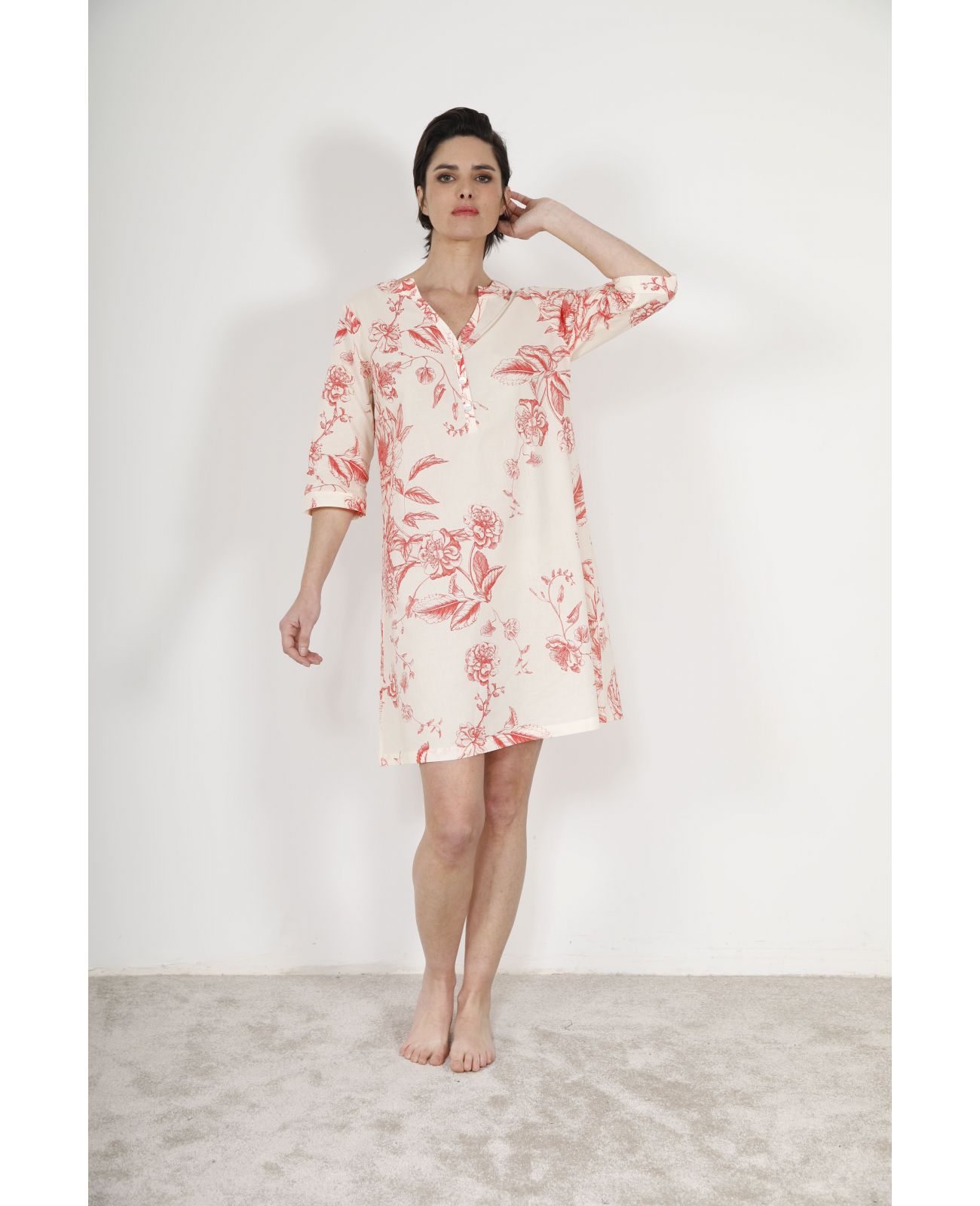Choisissez la liquette bouton femme WANDA corail Pilus : voile de coton 100% floral aérien de 90 cm pour un bien-être raffiné absolu. Col tunisien distinctif et tombé fluide en font l'essentielle du vestiaire lounge premium. Transformez vos instants chez vous en rituel d'élégance naturelle et ajoutez cette pièce d'exception à votre garde-robe dès aujourd'hui.