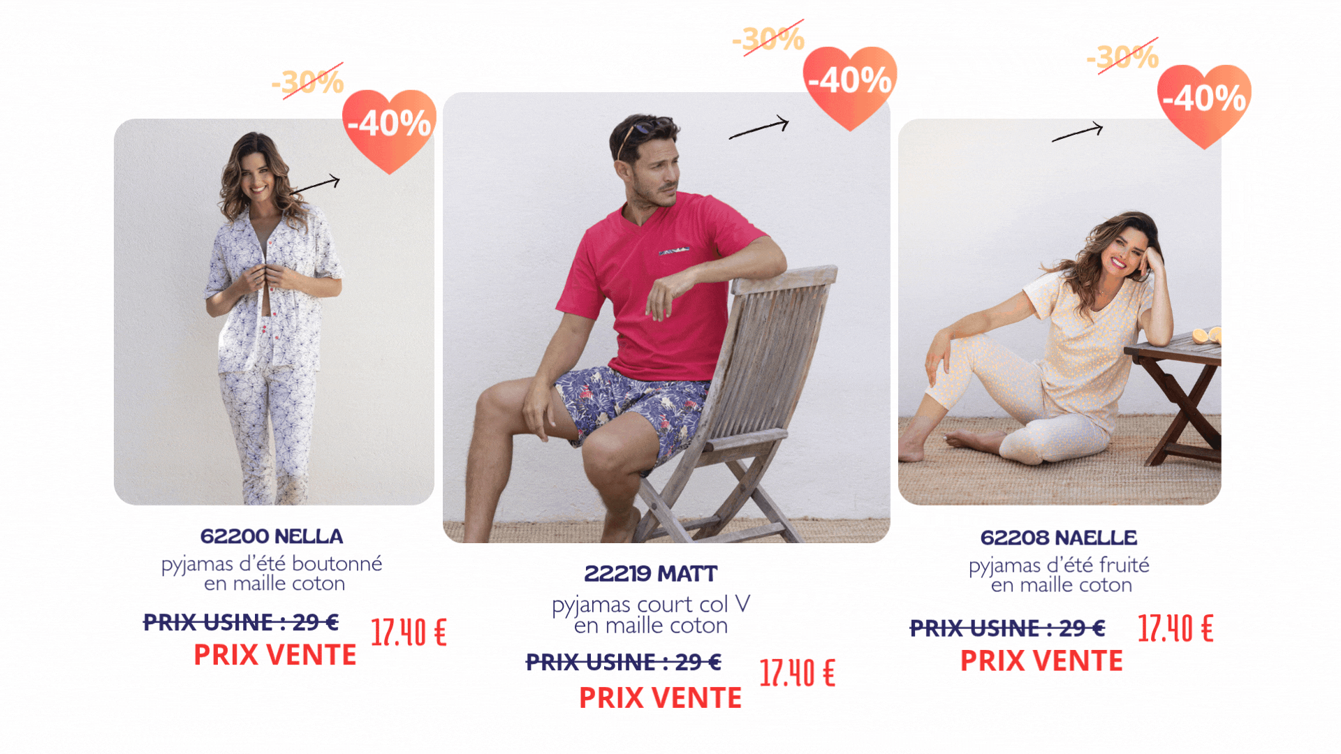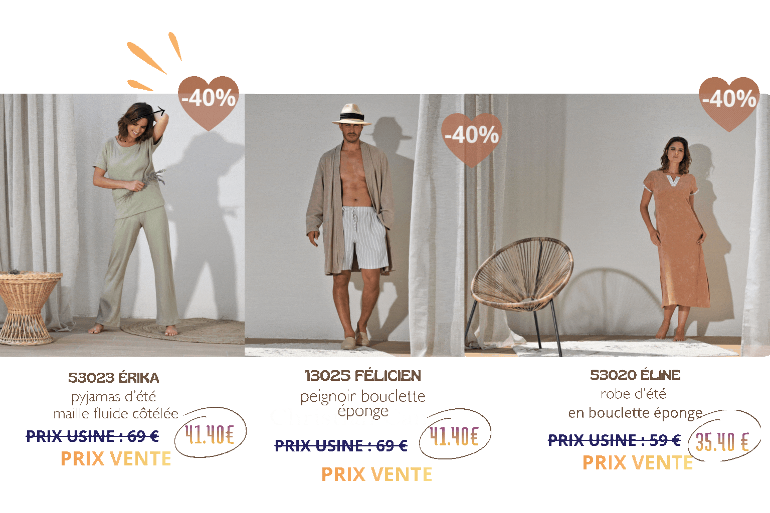 Profitez de tarifs uniques pour vous offrir des pièces d'été d'exception signées Christian Cane : Chemises de nuit d'été, pyjamas en coton longs ou courts peignoirs et autres alliant confort et élégance intemporelle.