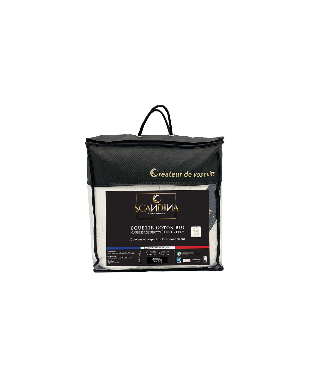 Couette hiver coton bio - 260 x 240 cm - 400g/m² - Made in France