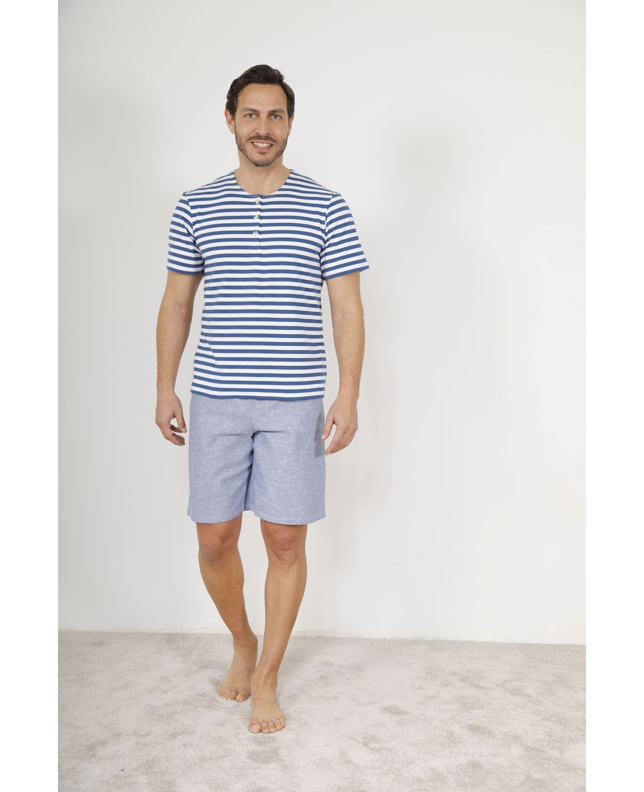 Pyjama court homme YVES en 100% coton, douceur et confort quotidien. Coloris bleu dur élégant et intemporel. Coupe légère idéale pour l’été. Signature christian cane, qualité durable.