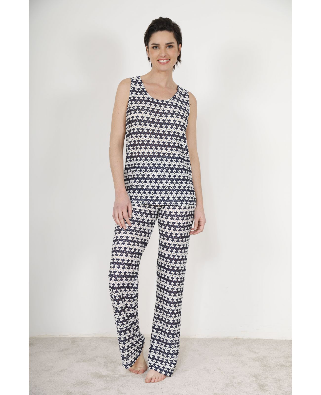 Élevez votre garde-robe estivale avec l'ensemble court d'été femme Zoeline, une création Christian Cane qui porte le total look pied-de-poule à une élégance rarement atteinte dans cette gamme de prix. Un top sans manches col bateau et un pantalon large fluide intégralement tissés dans le même jacquard pied-de-poule bleu marine et écru — cet ensemble court d'été femme deux pièces est une déclaration de style assumée, pour la femme qui aime être habillée avec intention et cohérence.