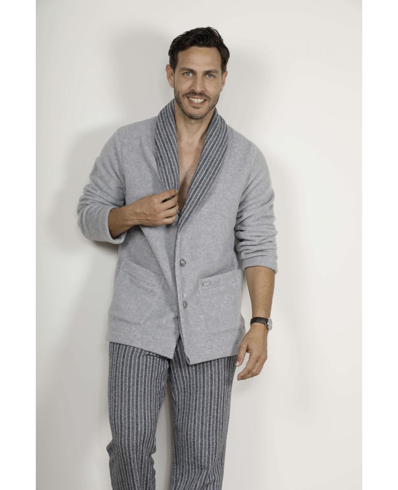Quand style et confort maximal se rencontrent, il naît des pièces uniques comme la veste col châle boutonnée pour homme. Avec sa longueur de 80 cm parfaitement étudiée, ce modèle séduit les amateurs de mode à la recherche d'une allure contemporaine tout en offrant un bien-être remarquable. Le mariage du tissu molleton polaire uni et du punto milano rayé au niveau du col distingue cette création originale, idéale pour affronter la fraîcheur avec élégance.