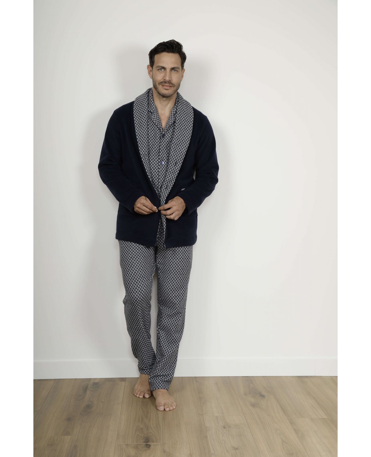 Une fantaisie subtile sur le dessus du col vient parfaire l’ensemble. Ce petit détail décoratif confère une note d’exclusivité et distingue immédiatement la veste col châle Teophile des autres créations masculines.